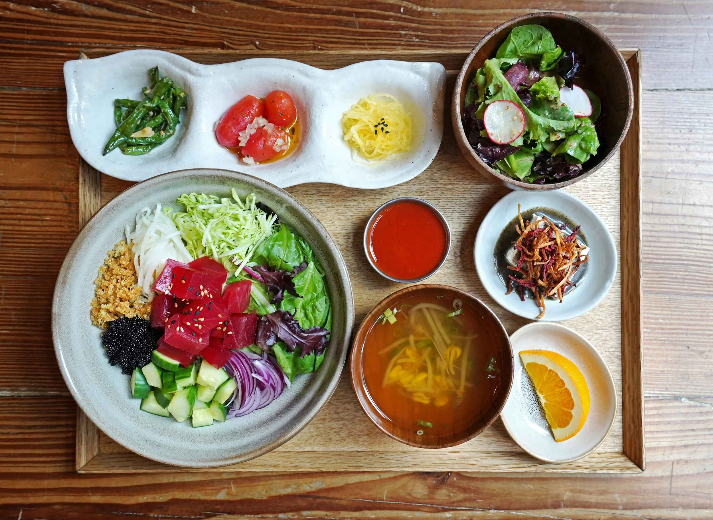 Multigrain rice option available for Tuna, Bulgogi and Vegetable Bibimbap +$2